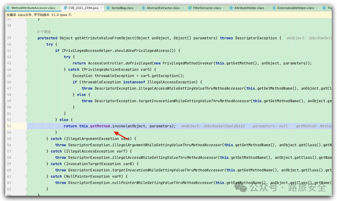 如果打了补丁的情况下,MethodAttributeAccessor已经被拉入黑名单,但是如果在其他类的反序列化过程中存在MethodAttributeAccessor的创建并调用的话则还是可以绕过的