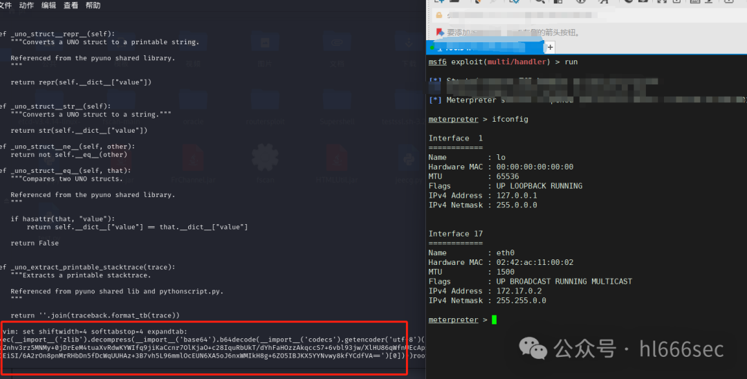 查看opt/libreoffice7.3/program/uno.py文件,发现恶意脚本已经写入成功,并成功触发