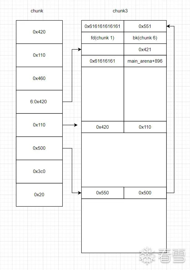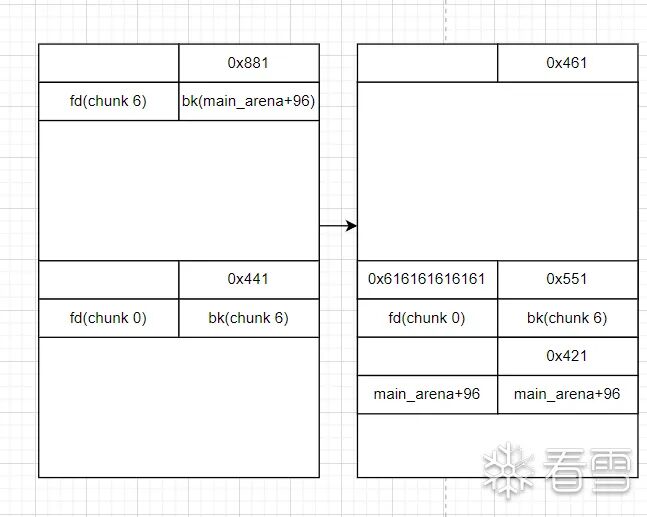 # 这样fd和bk分别指向chunk 0 和chunk 6 这样我们可以构造一个 合法的chunk head头