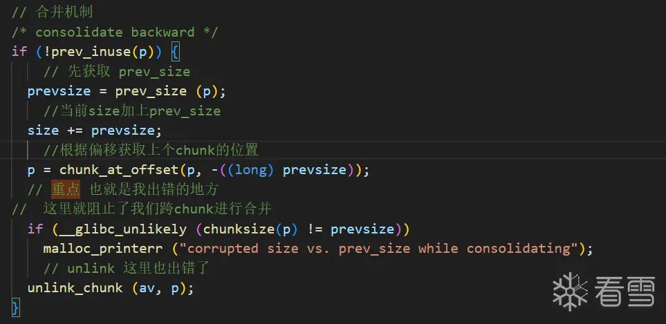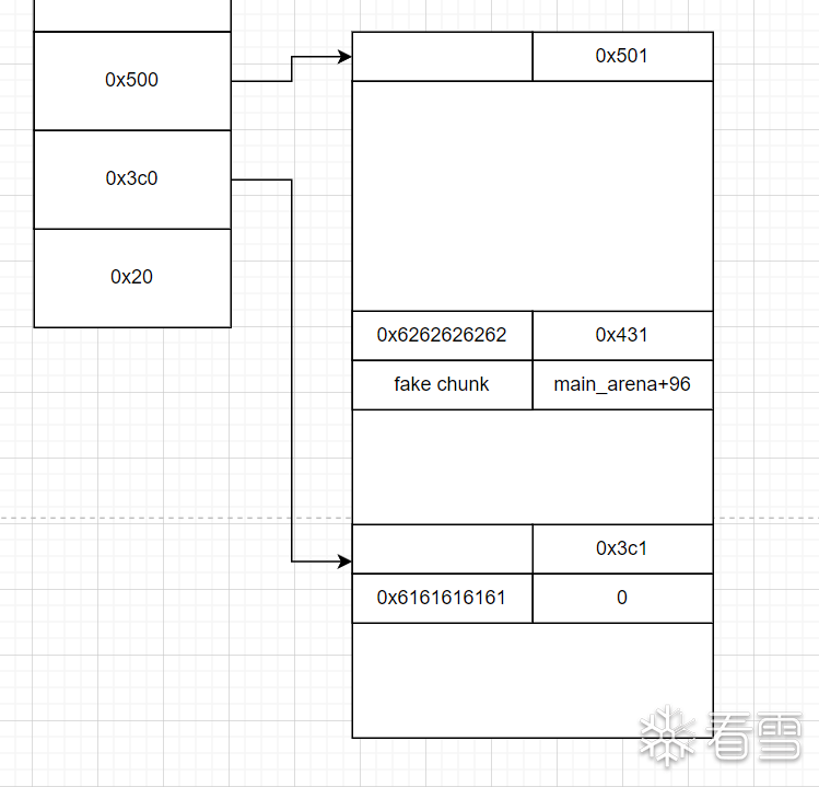 这里就要简单很多了,就是利用一次合并机制和分割机制,造成prev_inuse变为0,并且构造好prev_size。