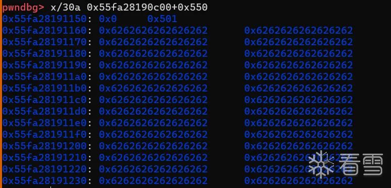 ◆首先我们看一下 fakechunk 0x550偏移位置坐标在哪里。