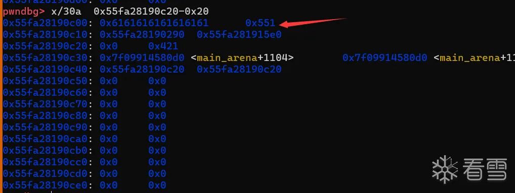 下面的解释其实有失偏颇,因为其实是我们专门计算的0x550这个数据,刚好对上一个chunk,但是为了方便理解我们选择倒推的方式。