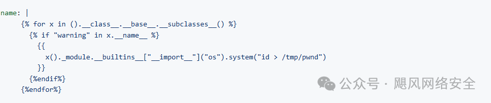漏洞描述:JumpServer是开源的堡垒机和运维安全审计系统,在JumpServer3.10.7之前版本中,攻击者可以通过构建恶意playbook模板利用Ansible中的Jinja2模板引擎从而在Celery容器中以root权限执行任意代码,在修复版本中,通过移除job-execution接口相关代码以修复漏洞。