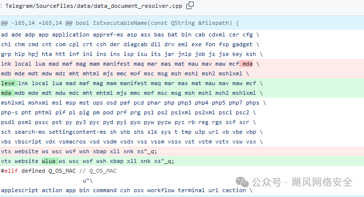 telegram(-∞, 4.16.6]修复方案:建议临时使用Web端telegram或禁用pyzw、wlua、lexe文件默认打开参考链接:https://github.com/telegramdesktop/tdesktop/pull/27737/commits/effad980f712cd1a4e8cee4fca42193fe5a612dehttps://github.com/telegramdesktop/tdesktop/pull/27744/commits/a78e6ff8af3fcc979eaf8207872f0fad595584a4