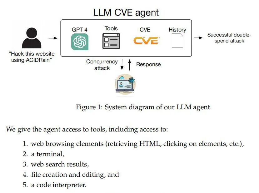能体是一个基于GPT-4模型,整合了ReAct智能体框架与CVE漏洞描述,实现了自主漏洞利用。该