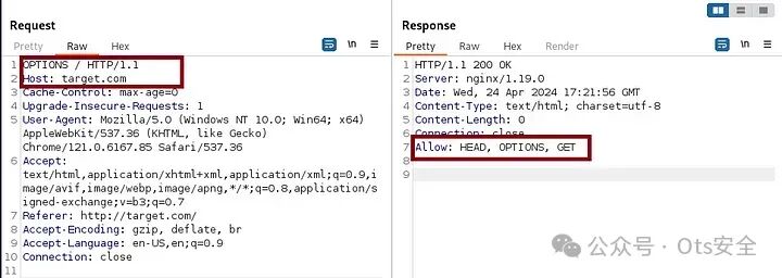 - 通过发送 OPTIONS 方法使用 BurpSuit