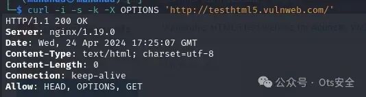 curl -i -s -k -X OPTIONS 'http://testhtml5.vulnweb.com/'