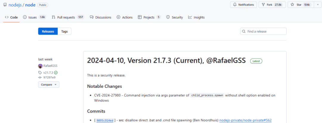 该漏洞(CVE-2024-27980)由安全研究员Ryotak发现并报告,源于Node.js通过‘child_process.spawn’或‘child_process.spawnSync’函数执行代码时处理.bat文件的方式。攻击者可以将恶意命令注入到特制的命令行参数中,绕过‘shell’选项被禁用时理应存在的安全机制。成功利用此漏洞可能允使攻击者在受影响系统上远程执行任意命令。