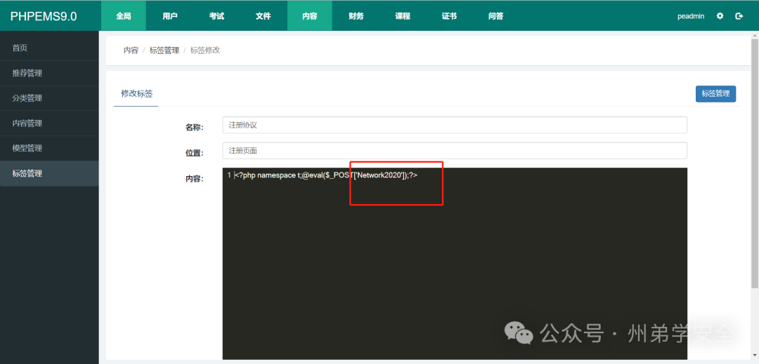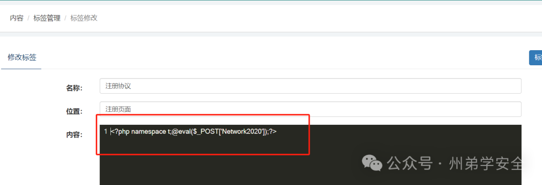 2. 修改密码后,根据CMS序列化漏洞,在后台中对前端注册页面写入了路由webshell