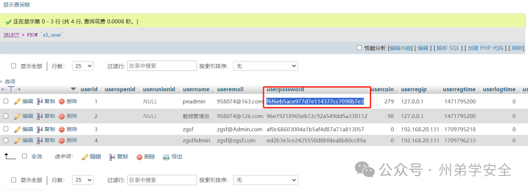 因为题目为用户名被修改,所以查看x2_user表(可视化中没有这张表),所以需要select * from x2_user去查询(此处是西湖论剑0day,反序列化漏洞)