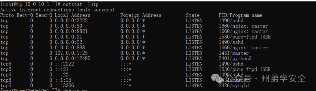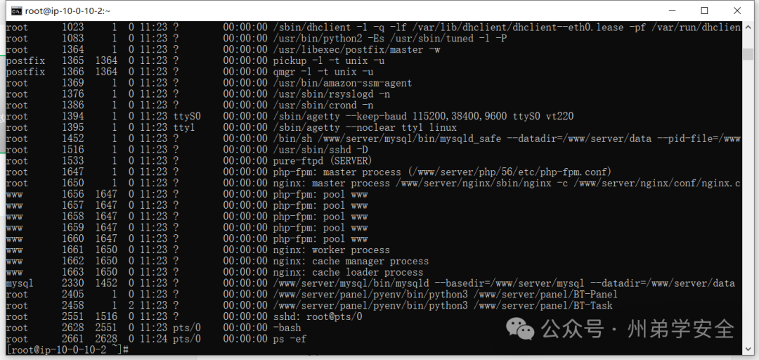 首先使用netstat查看本地端口开放情况,ps -ef看到是安装宝塔的****