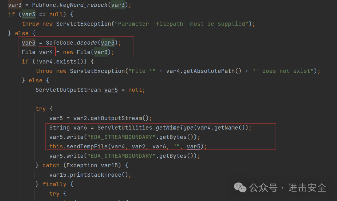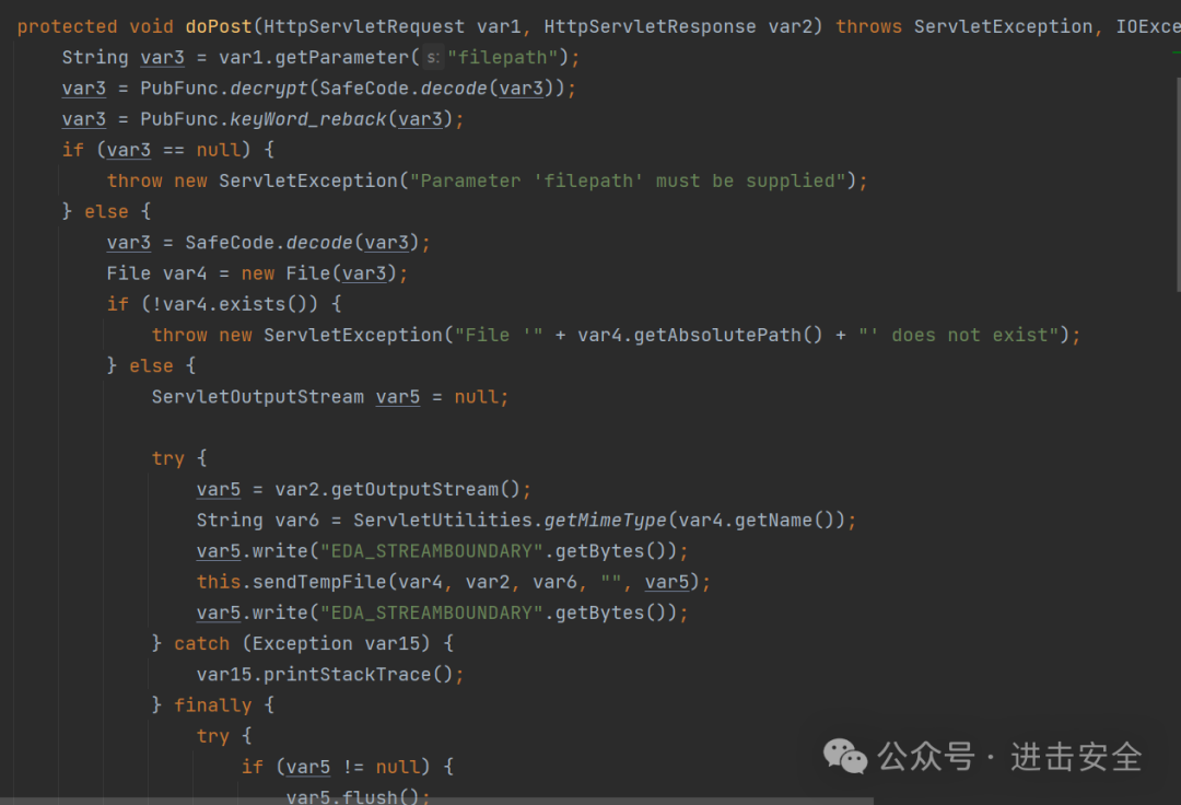 查看代码我们可以看出来存在一个接受参数为filepath参数,并且传递到了方法decode方法当中进行了解密,解密我们稍后说,除了解密还进行传递到了方法