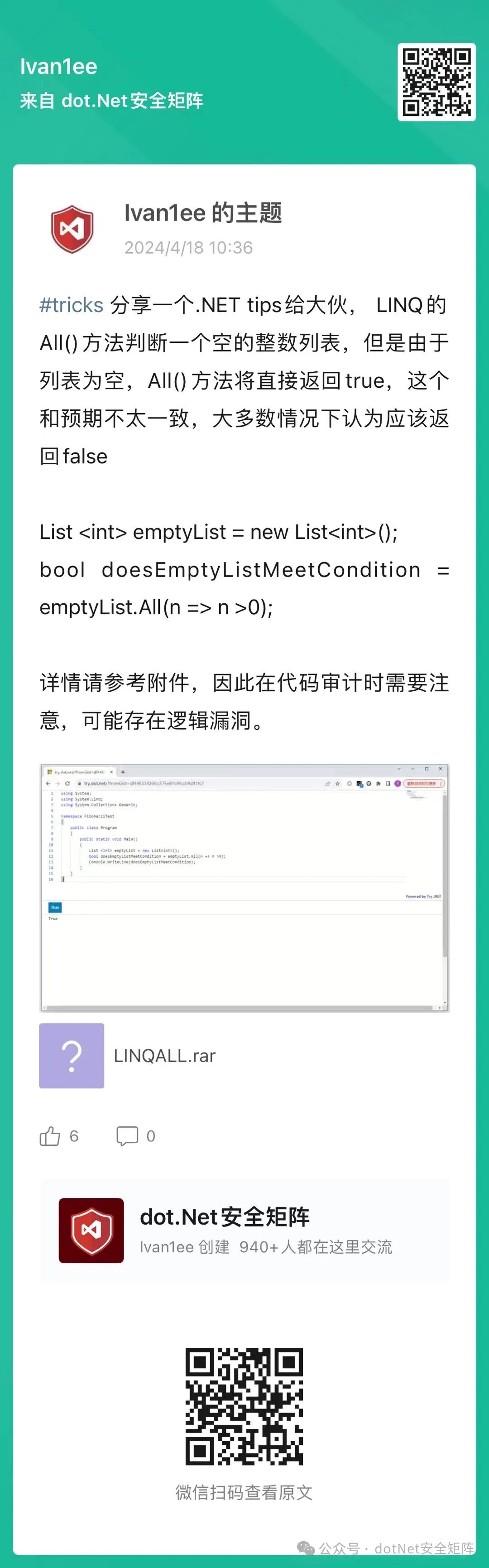 专攻.NET安全的 dotNet安全矩阵 2024-04-21 08:31