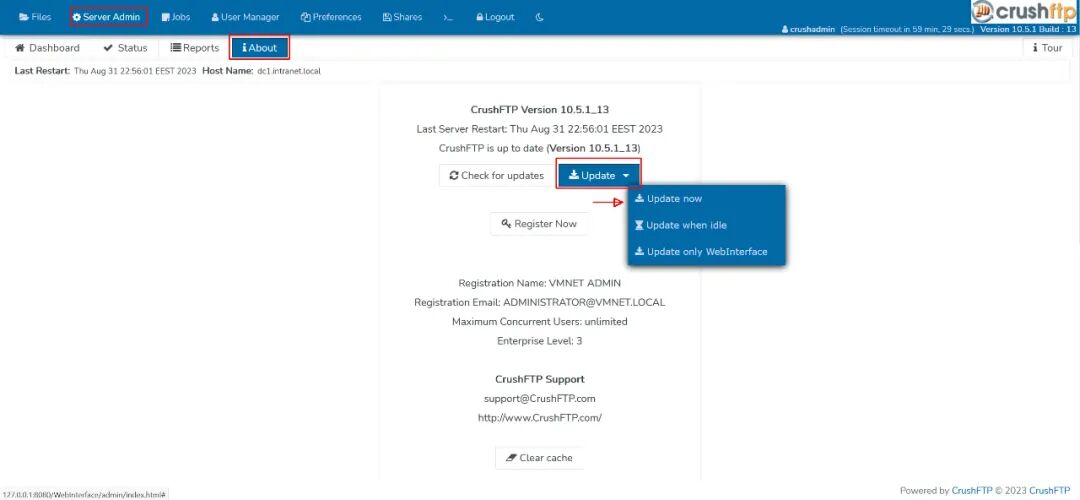 该漏洞的性质导致用户难以检查是否遭到利用,CrushFTP发言人称他们目前尚未听说有用户报告受害,但相信已经有一些未及时更新的用户受到影响,只是他们自己还没有意识到: