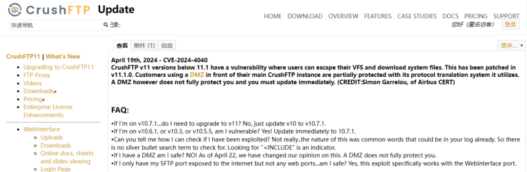 文件传输服务器软件CrushFTP曝0day漏洞,且已被利用