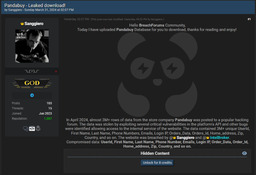 熊猫购物(PandaBuy)是一个知名全球购物平台,为国际用户提供从中国各电子商务平台购买产品的服务(如天猫、淘宝、京东)。该公司最近确认遭受了一次大规模数据泄露,有130万用户受到影响。