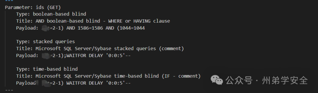 直接sqlmap跑一下,不用想就知道是盲注,而且经过/sys/config泄露出数据库为MSSql,并且泄露出数据库账号密码及地址