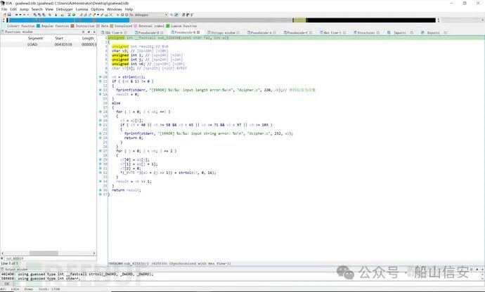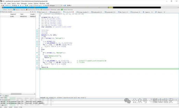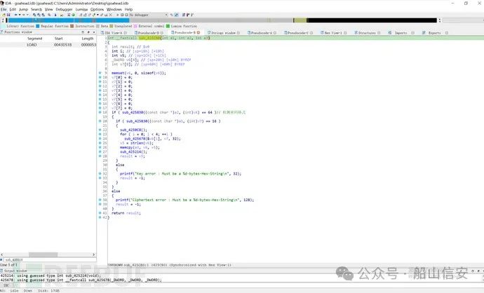 sub_425830函数第10行代码获取加密密码的长度,并在11行检测密码长度是否为奇数,如果为奇数则退出函数,并返回结果0。