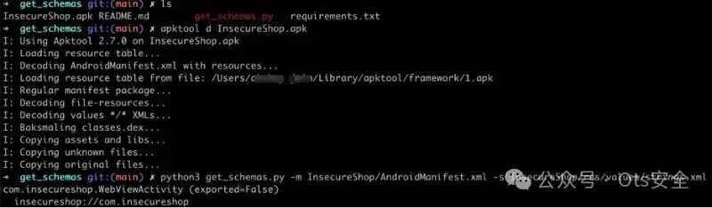 我们使用 apktool 获取 AndroidManifest.xml 文件并查看 InsecureShop 中的活动。