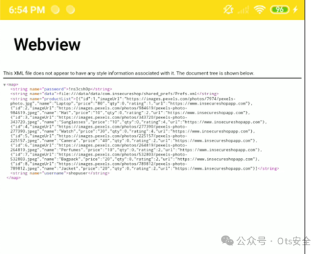 - Params:   url=file:///data/data/com.insecureshop/shared_prefs/Prefs.xml