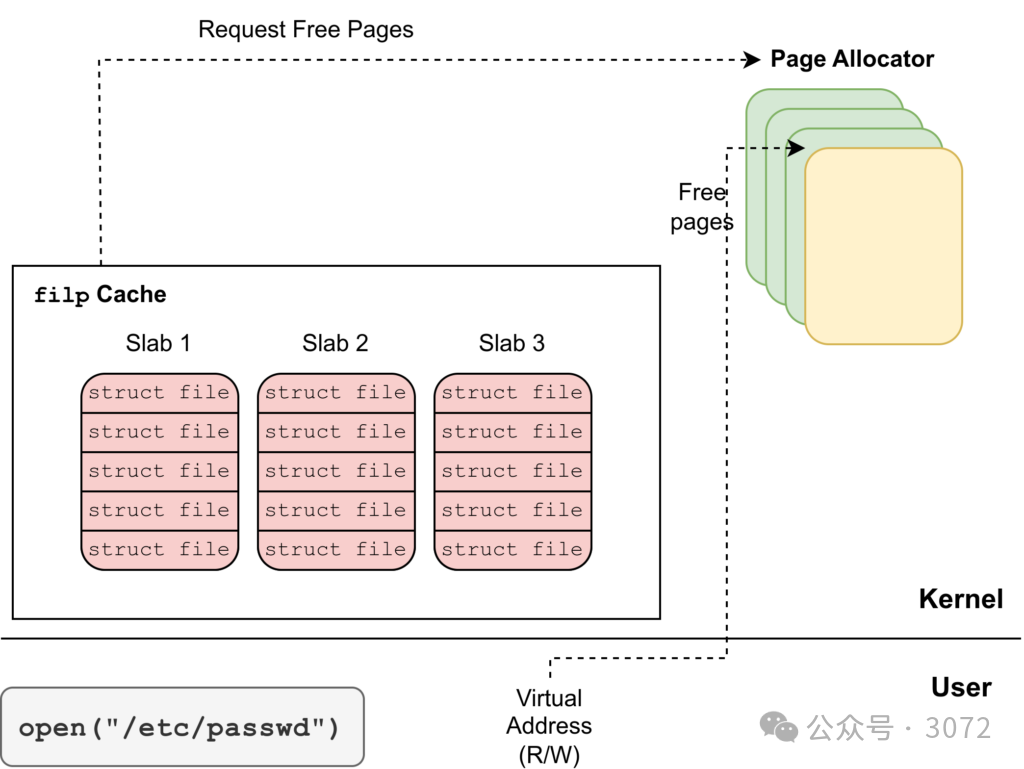 因此,此后创建的所有 file 结构体将被分配在攻击者控制的内存区域中,使他们有可能修改这些结构体。