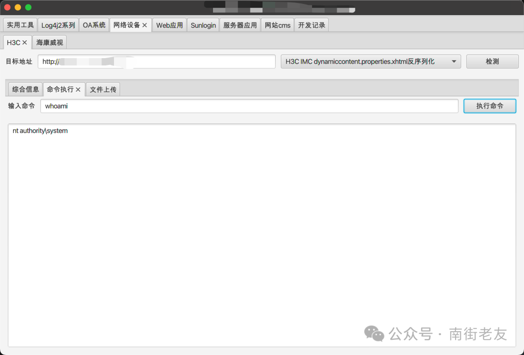 H3C用户自助服务平台 dynamiccontent.properties.xhtml 接口出存在命令执行漏洞,未经身份验证的攻击者可以利用此漏洞执行任意指令,写入后门文件,导致整个web服务器存在被控的风险。