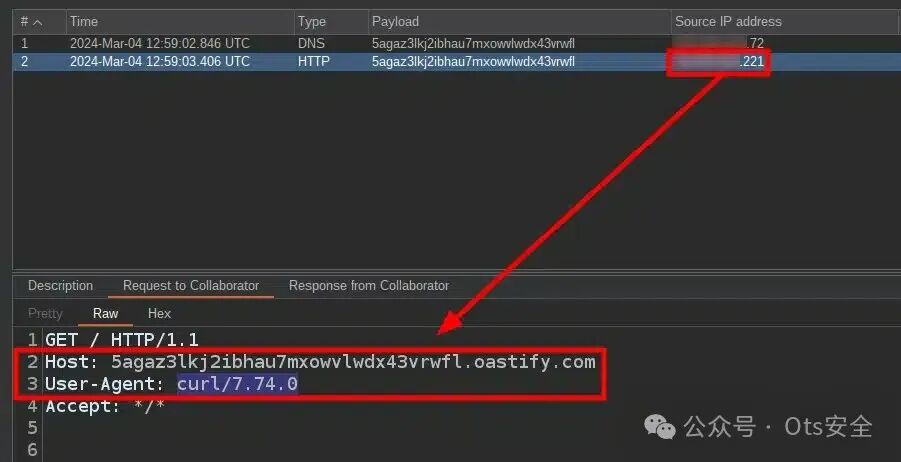 然后,可以确认该请求已向 Burp Collaborator 发出: