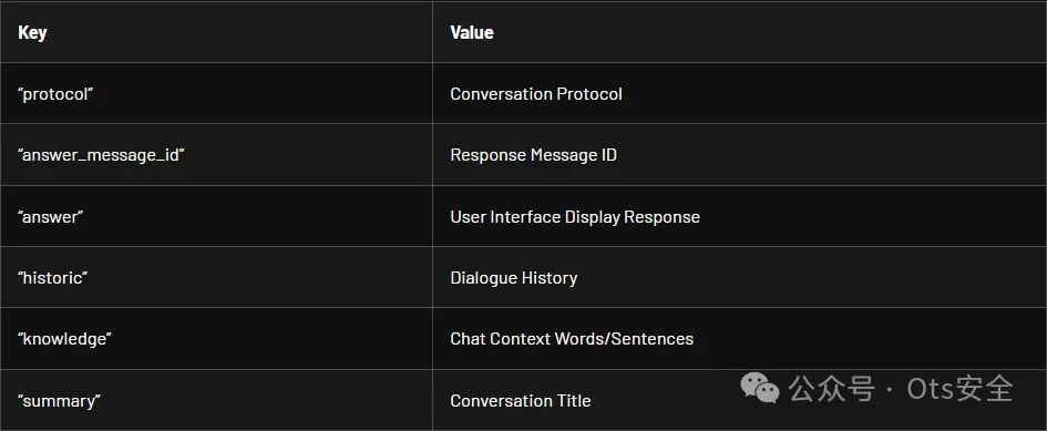 在开始新的聊天并与助手保持对话后,我们发现,从发送的第二条消息开始,HTTP (POST) 请求包含一个 JSON 正文,其中包含名为“historic”的密钥。此键的用途是存储对话历史记录,遵循用户发送的提示模式和助理的响应。