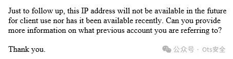 在注册了一个帐户并进行了一些非常无辜的社会工程之后,我得到了以下回复。然后是第一个人的经理发来的第二封电子邮件。哦,好了,就这么多了。
