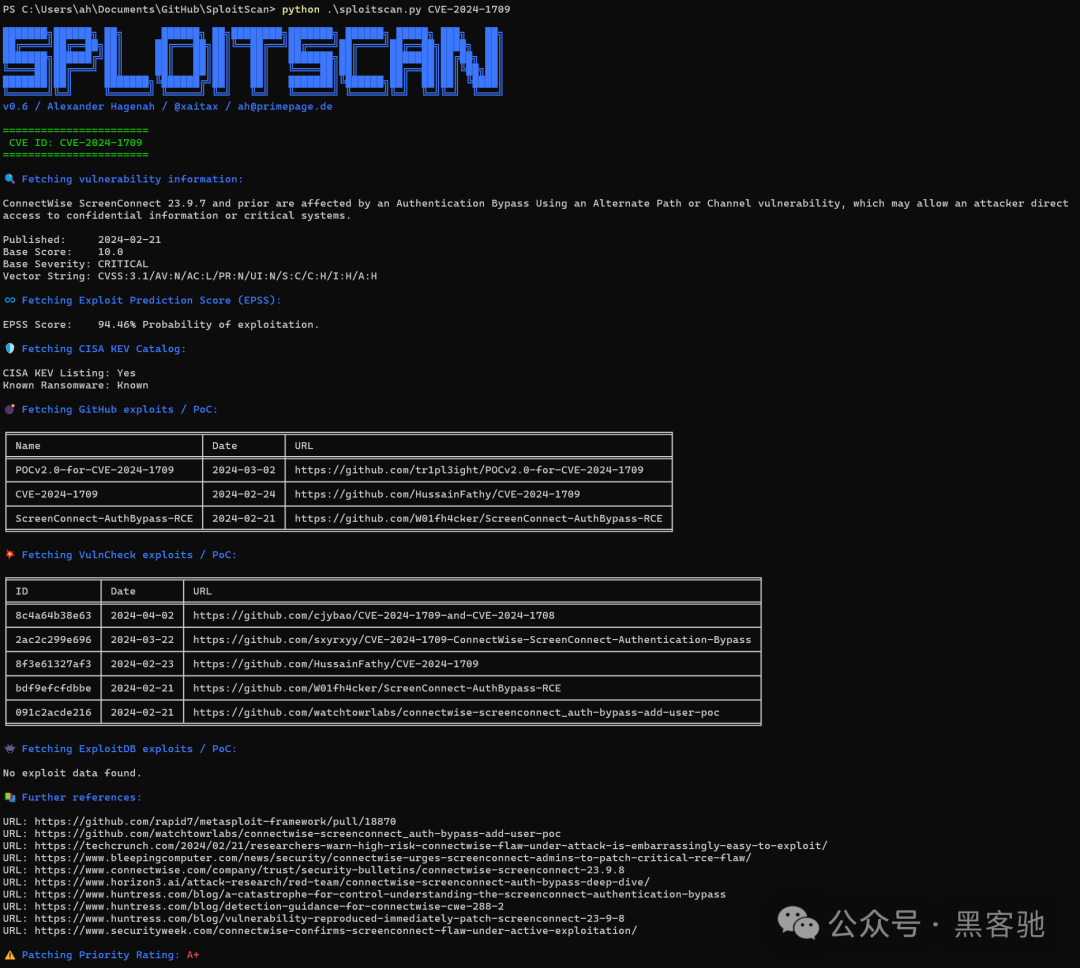 SploitScan 是一款功能强大且用户友好的工具,旨在简化识别已知漏洞的利用及其各自的利用概率的过程。使网络安全专业人员能够快速识别和应用已知的漏洞并进行测试。对于寻求增强安全措施或针对新兴威胁制定强大的检测策略的专业人士来说,它尤其有价值。❞