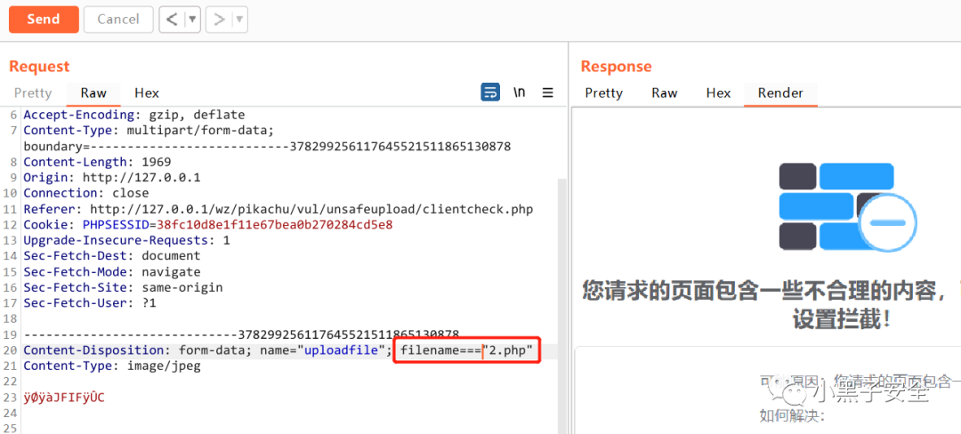将文件名修改为数据包里面的参数,让安全狗误判。