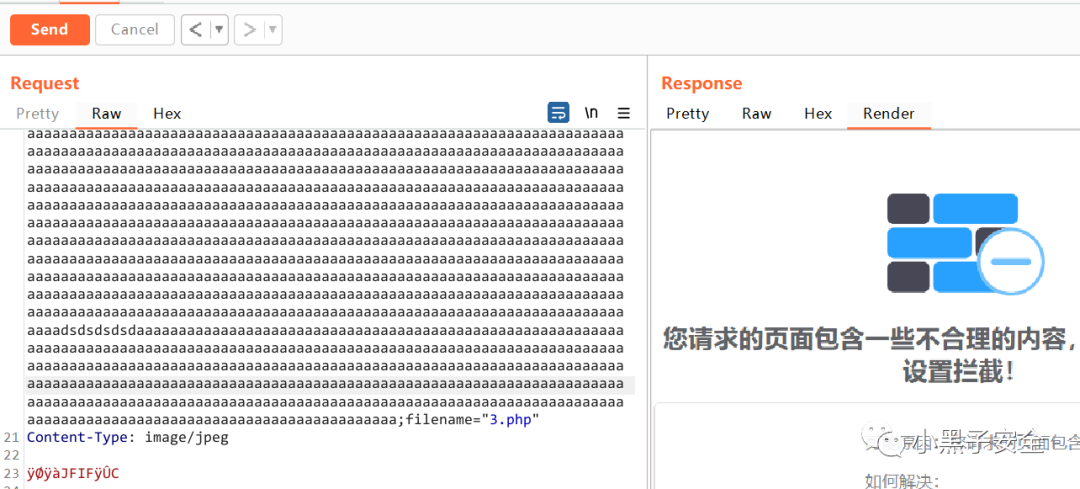 写上很多垃圾数据,让安全狗在匹配时数据溢出,这样就无法检测到上传文件处。