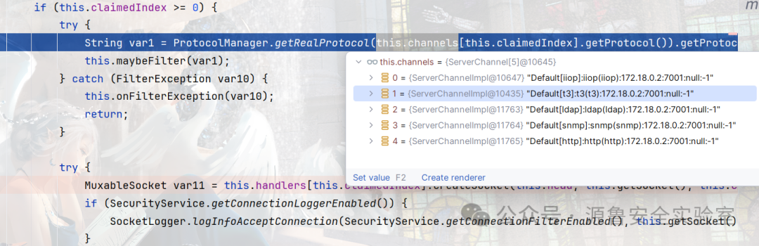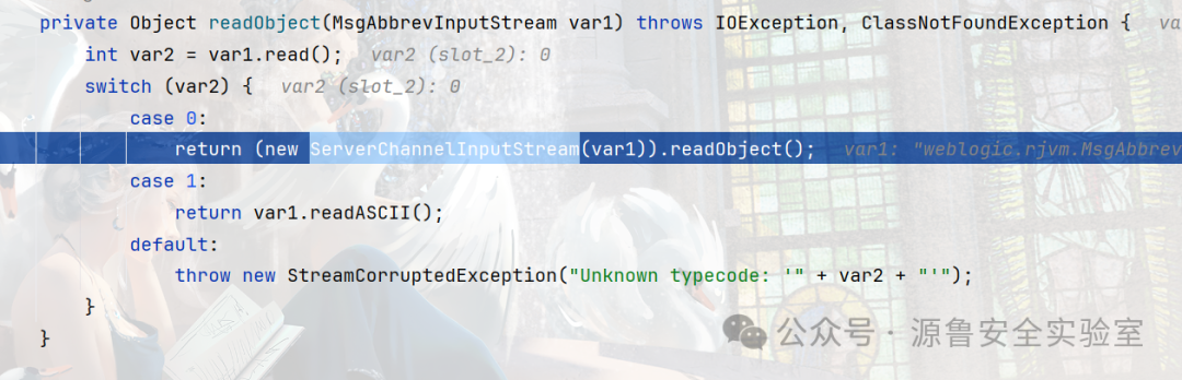 这里又调用了ServerChannelInputStream,之前提到过,weblogic对于这些反序列化的漏洞都是在类似这些地方加