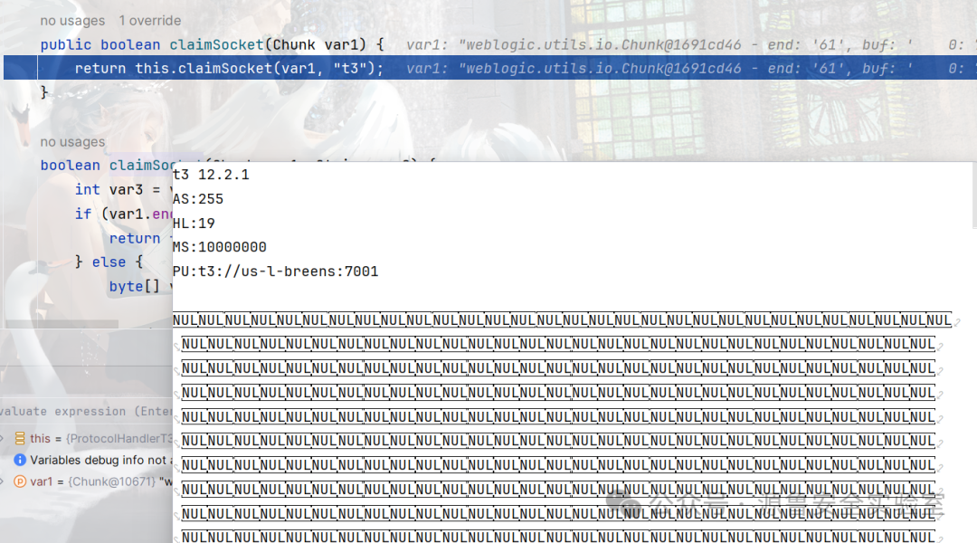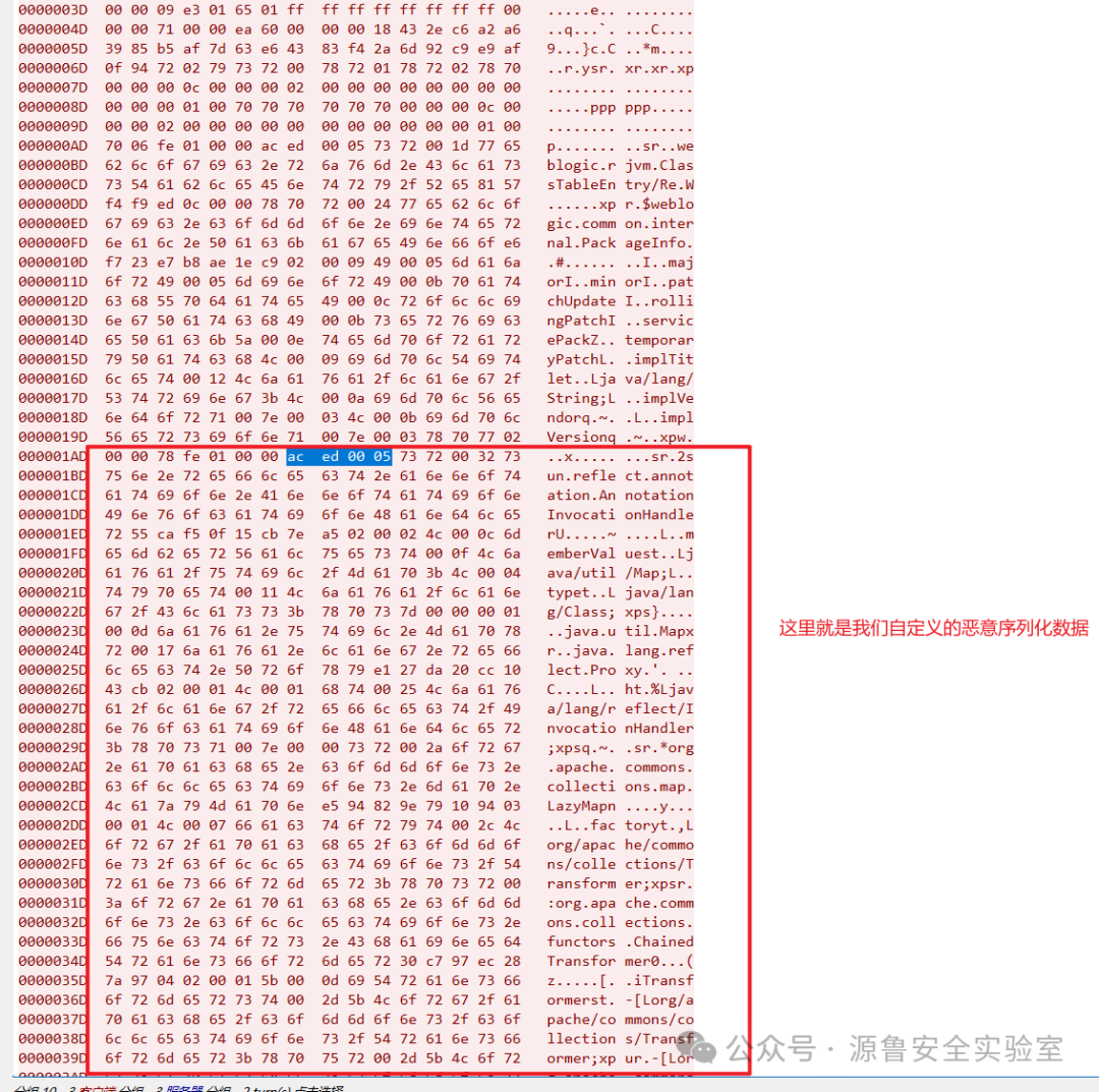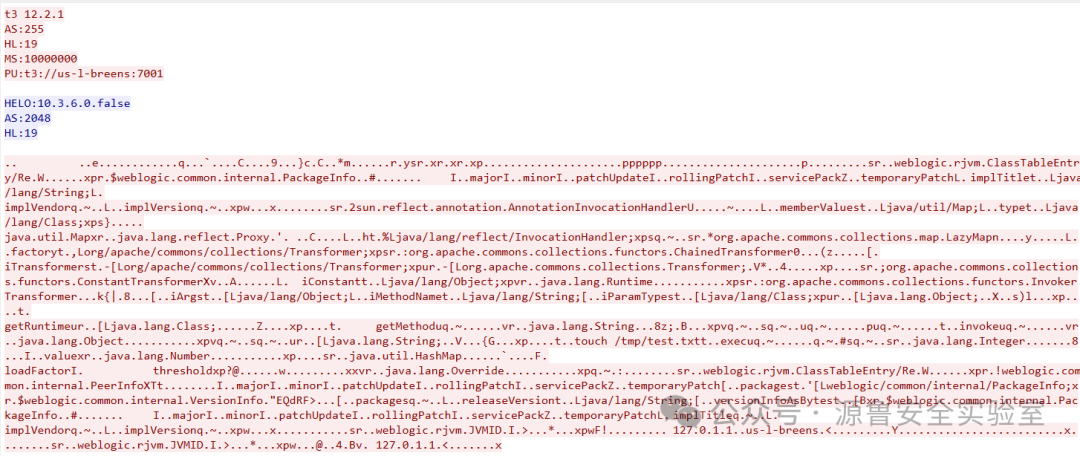 可以看到,最开始的时候,就是t3协议的请求头,也就是t3 12.2.1AS:255HL:19MS:10000000PU:t3://us-l-breens:7001