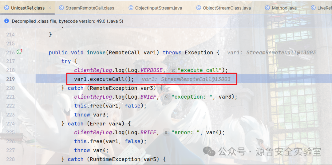回到dirty方法,在调用this.ref.invoke()的时候(也就是UnicastRef.invoke),调用了var1.executeCall():