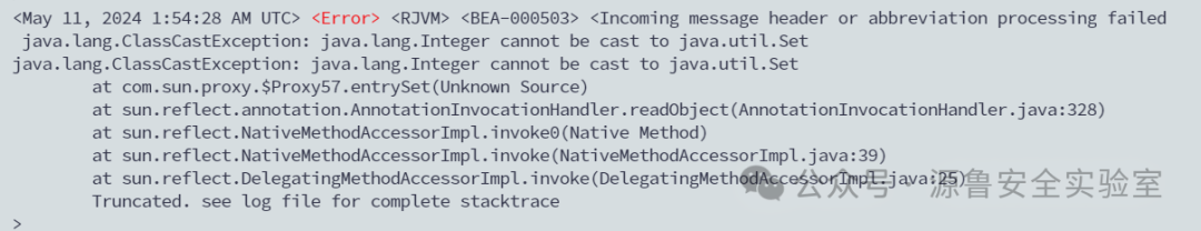 在反序列化时,weblogic会抛出异常,但是并不影响反序列化执行恶意代码。