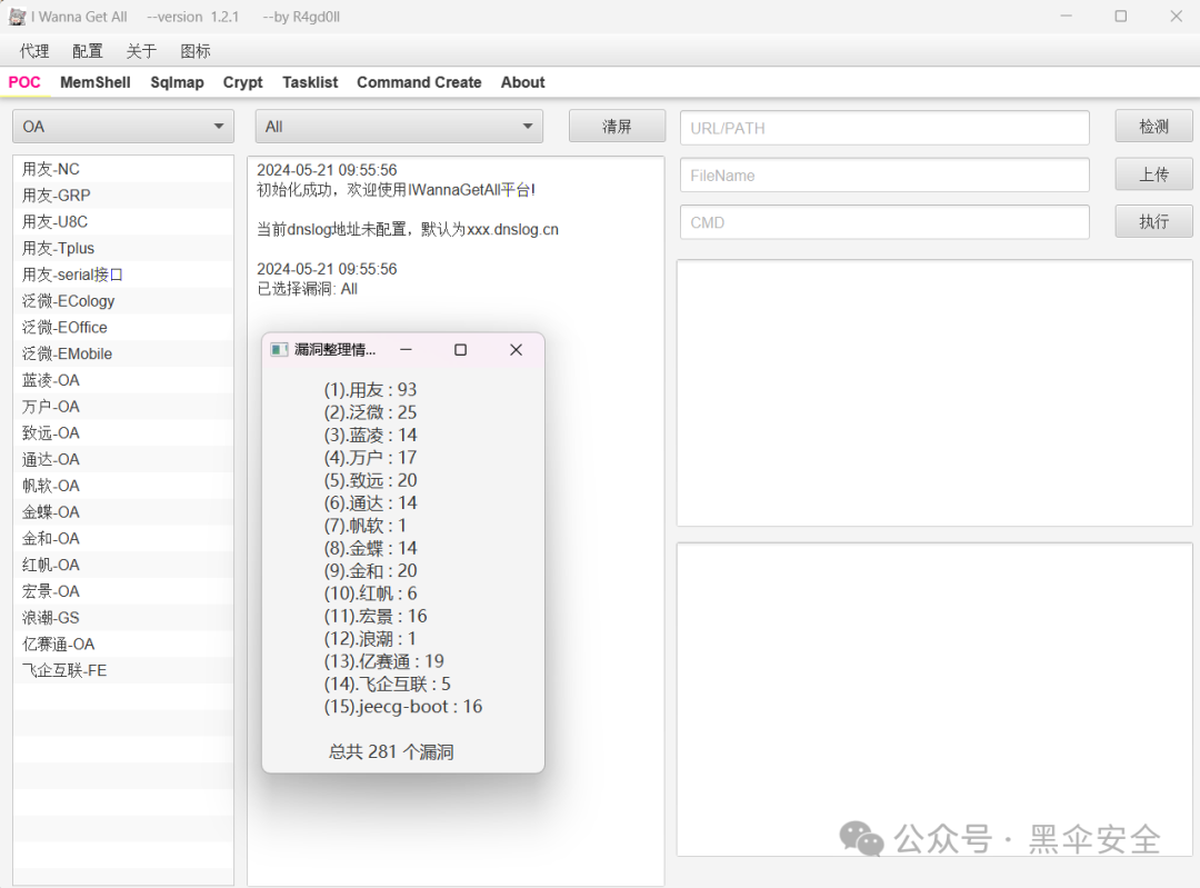 github好项目推荐-综合OA漏洞利用工具 发布于2024年5月22日2025年7月19日 作者:cve-20 github好项目推荐-综合OA漏洞利用工具 umbrella枇杷哥 黑伞安全 2024-05-21 18:17 https://github.com/R4gd0ll/I-Wanna-Get-All