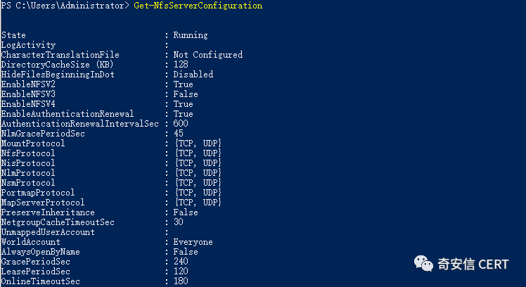 要确认 NFSv3 已关闭,可在 PowerShell 窗口中运行