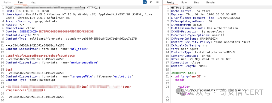 目前,奇安信威胁情报中心安全研究员已成功复现Atlassian Confluence Data Center and Server 远程代码执行漏洞(CVE-2024-21683)