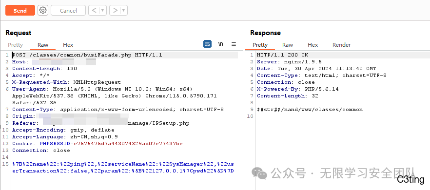 通过入口反射调用了SysManager类中的ping方法在ping方法中 无过滤传进来的$ip参数直接拼接shell指令并执行执行,并将执行后的输出返回到前端