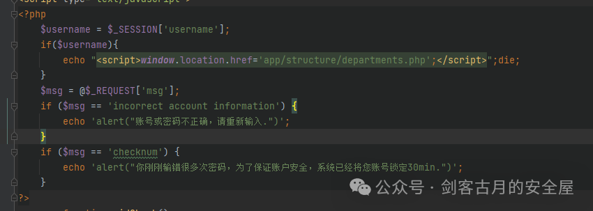 如果存在登录凭据,则直接进入后台,如果登录失败则会自动给$msg参数赋值进行判断登录失败情况