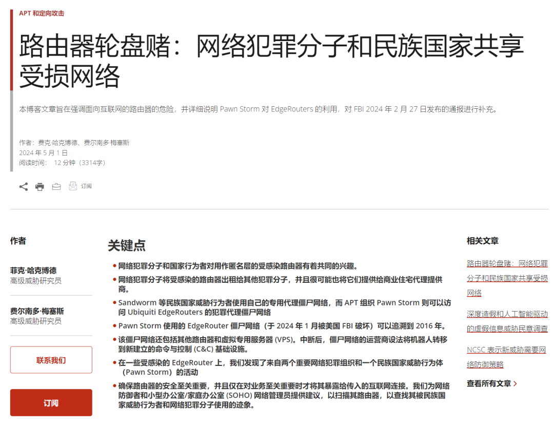 https://www.trendmicro.com/en_us/research/24/e/router-roulette.html),第三方犯罪代理僵尸网络可以追溯到