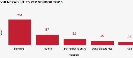 报告称:“西门子和ABB等市场领先的供应商是受影响最大的供应商前五名。” “这些自动化公司在XIoT范围内构建产品,并同时建立了产品安全团队,与外部研究人员密切合作,以发现和修复每个漏洞。”