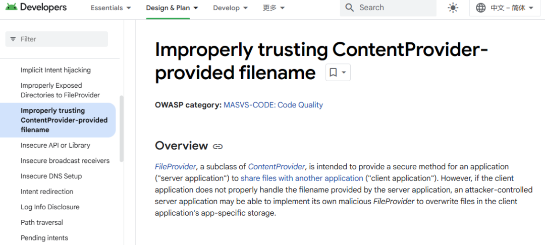 据分析,问题出现在Android的数据和文件共享系统的内容提供程序组件及其“FileProvider”类中。谷歌表示,FileProvider是ContentProvider的子类,旨在为服务器应用程序提供与客户端应用程序共享文件的安全方法。然而,如果客户端应用程序未正确处理服务器应用程序提供的文件名,那么攻击者就可能以恶意的FileProvider覆盖客户端应用程序特定存储中的文件。
