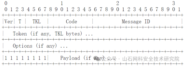 类型(Type):消息类型,包括CON(Confirmable)、NON(Non-Confirmable)、ACK(Acknowledgement)和 RST(Reset)。