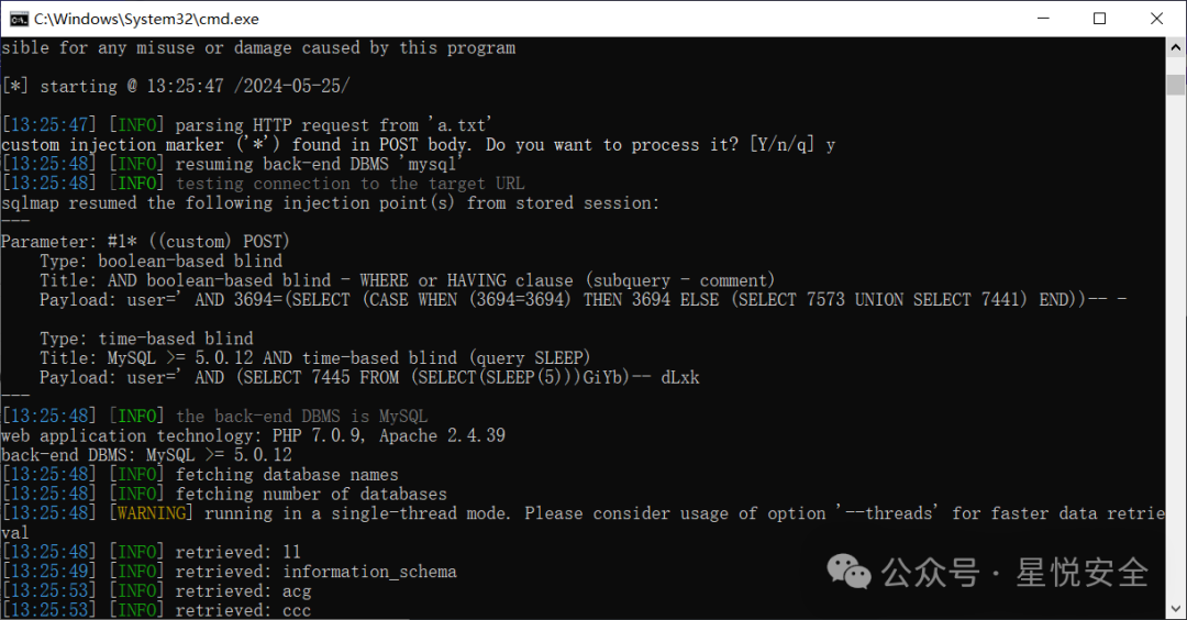 python sqlmap.py -r a.txt –level=3 –dbms=mysql