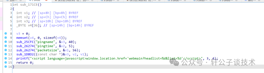 第13行被调用了,且传入了v3 v2 v1三个参数,v3又在第10行,通过pingname进行赋值