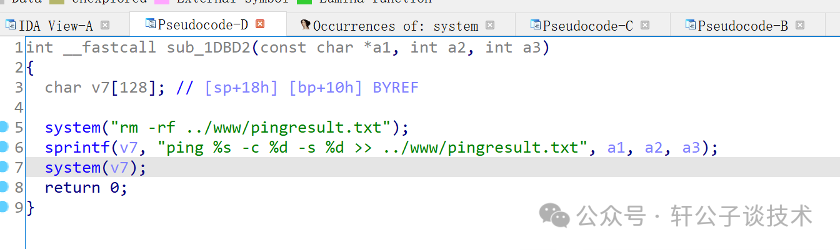 反汇编与代码分析:仔细分析反汇编后的代码,查找可能的命令注入点、不安全的函数调用等。
