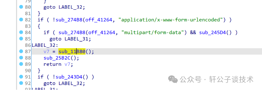 我们接着找,sub_11B80,发现在sub_23F60函数中的87行存在